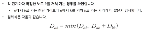 # 현재 노드를 거쳐서, 다른 노드로 이동하는 거리가 더 짧은 경우