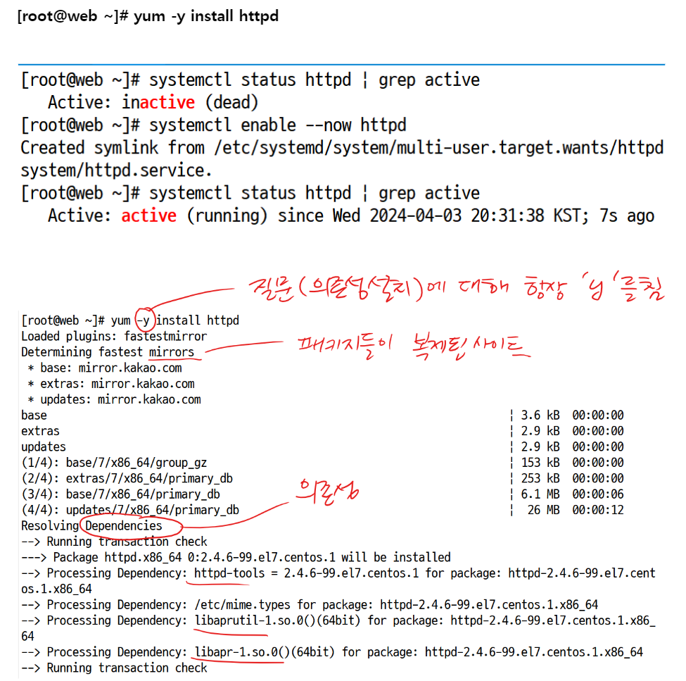 -y : 의존성 해결, 질문마다 항상 ‘y’를 입력.