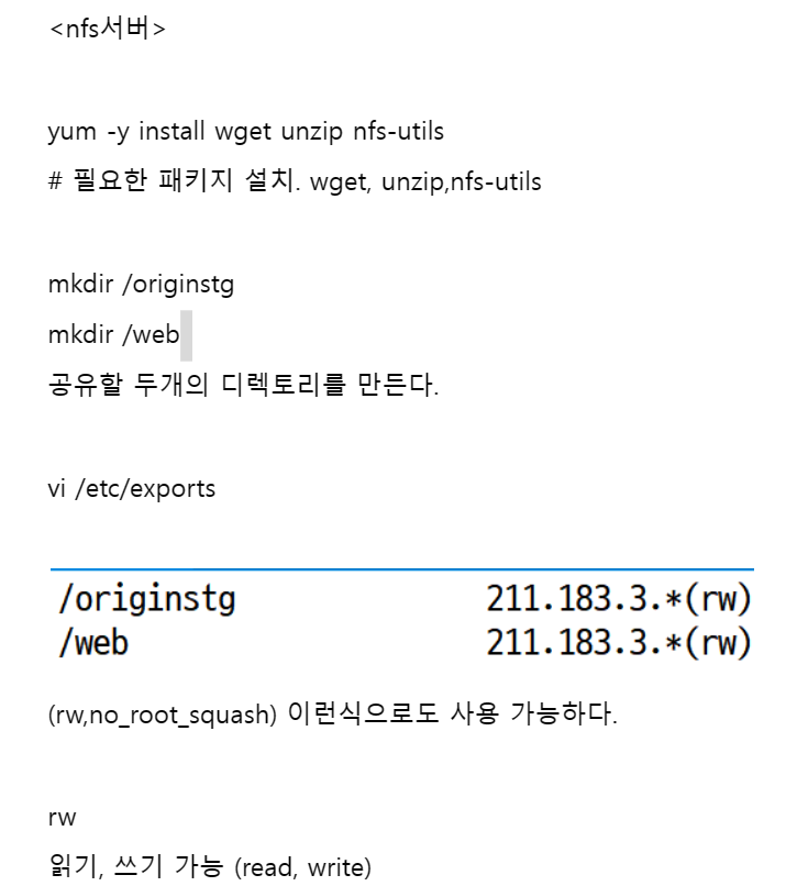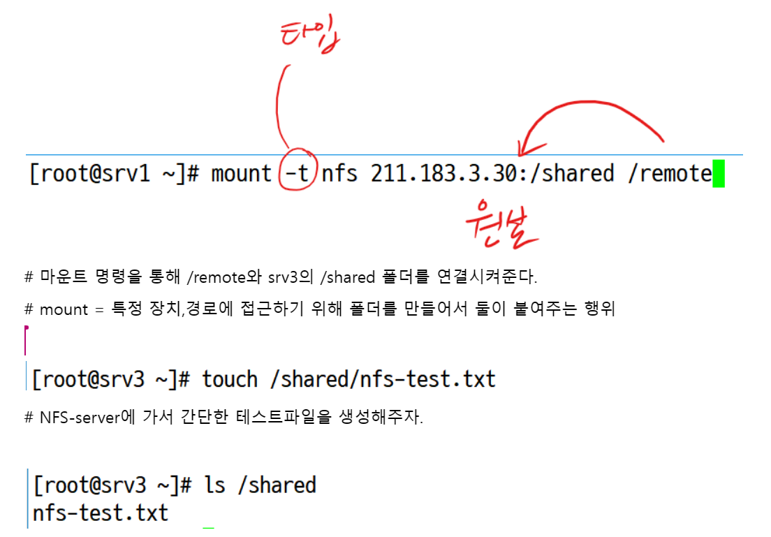 NFS(Network File System)는 네트워크에 파일을 저장하는 메커니즘이다. 이 시스템은 사용자가 원격 컴퓨터에 있는 파일 및 디렉토리에 액세스할 수 있고 해당 파일 및 디렉토리가 로컬에 있는 것처럼 처리하도록 허용하는 분산 파일 시스템이다.