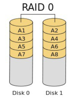 - RAID를 구성하는 모든 디스크에 데이터를 분할하여 저장