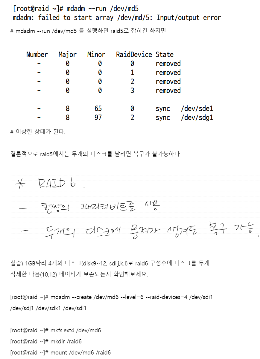 - RAID 5에서 성능, 용량을 줄이는 대신 안정성을 좀 더 높인 것