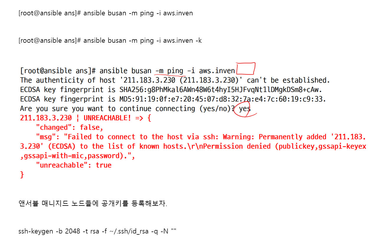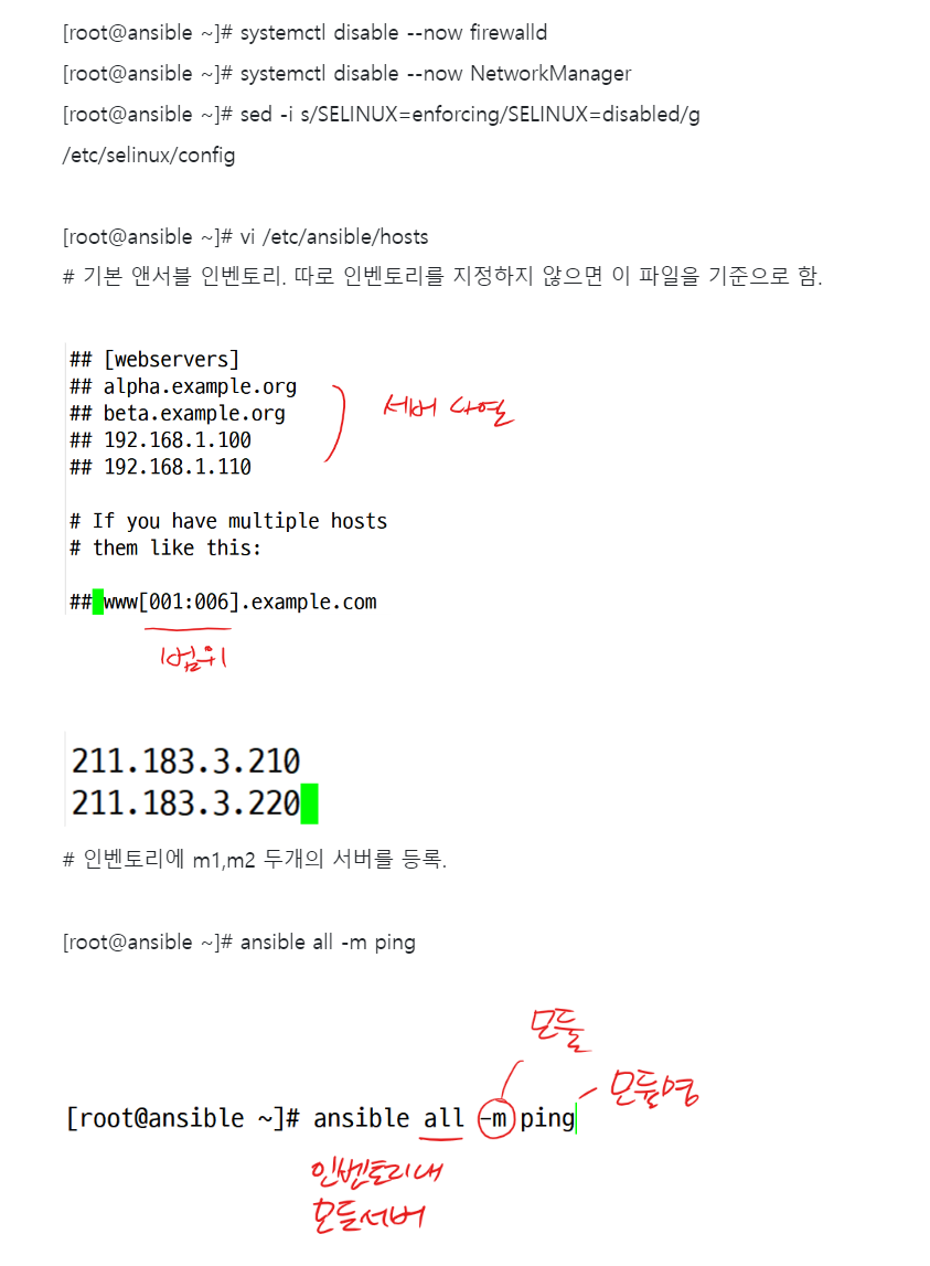 [root@ansible ~]# ansible 211.183.3.210 -m service -a "name=firewalld state=stopped" -k