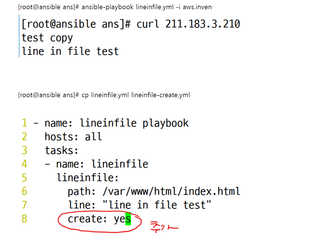 2.lineinfile 옵션 통해서 내용을 추가하는 방법.
