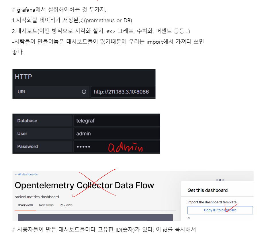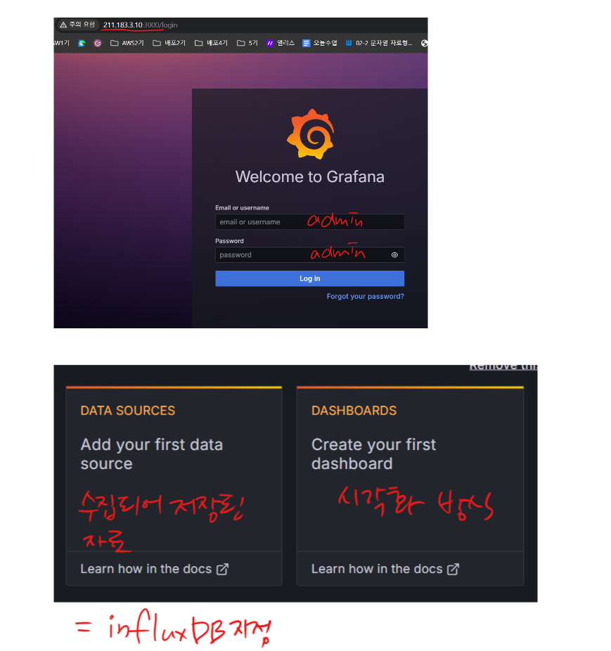 3.시각화 - grafana. 저장된 데이터를 토대로 그래프를 그리거나 수치로 표현.