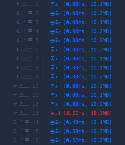 하지만 위와 같이 풀면 단 하나의 테스트케이스를 통과하지 못해 오답이 뜬다.. ㅠ
