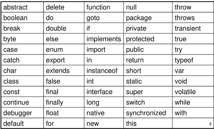 | 식별자로 사용 가능한 단어 | 식별자로 사용 불가능한 단어 |